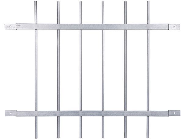 Fenstergitter Friedberg, zur Befestigung auf der Außenwand, Material: Stahl roh, Oberfläche: feuerverzinkt, anthrazit-metallic kunststoffbeschichtet, zum Aufschrauben, Länge Lasche: 60 mm, Gesamtbreite: 940 mm, Gesamthöhe: 740 mm, Quertraverse: 30 x 4 mm, Loch: Ø9 mm