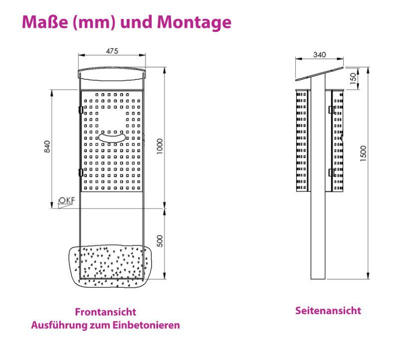 Renner Stand Abfallbehälter 70 l Beutelspender zum einbetonieren