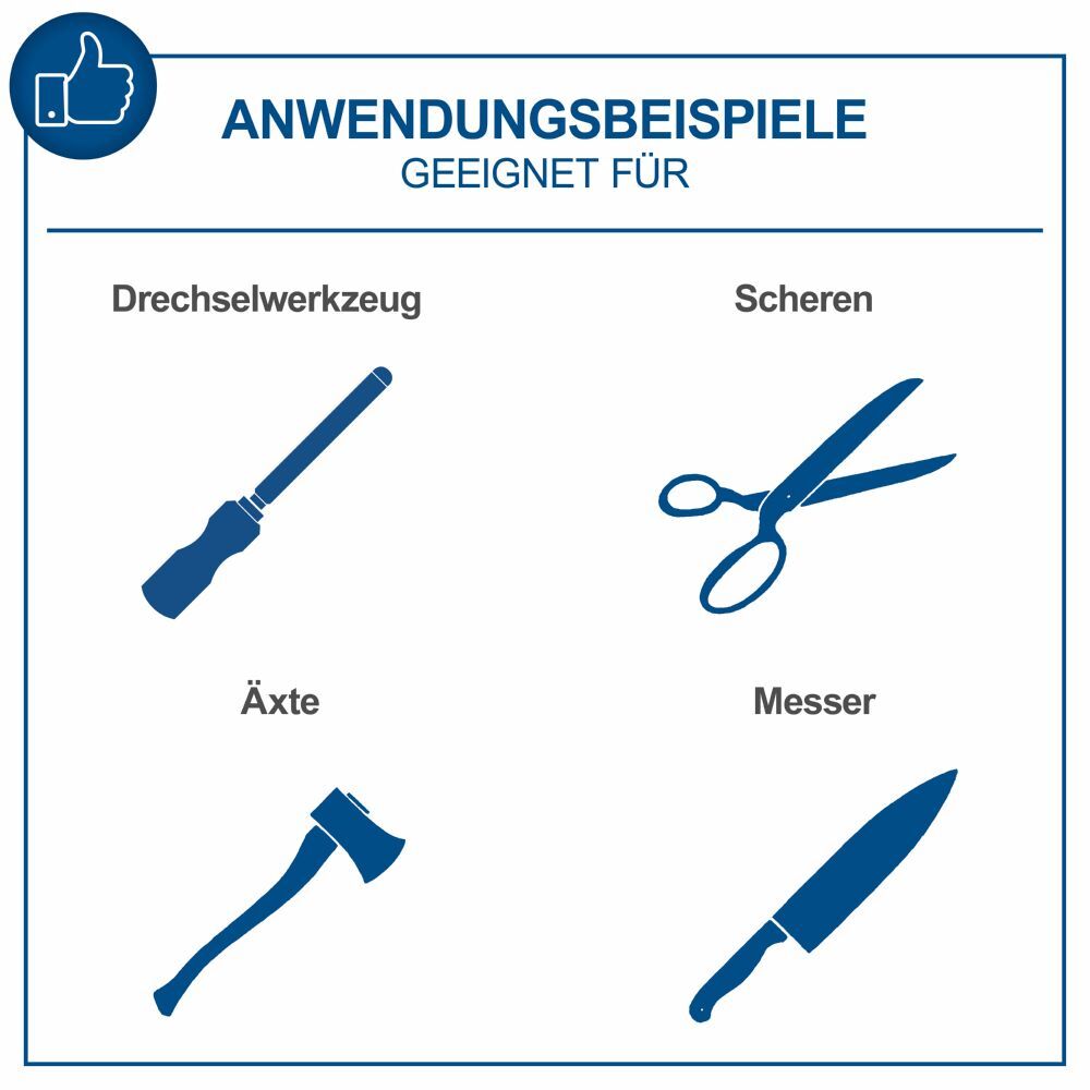 - Inklusive Abziehpaste, Winkellehre, Steinpräparierer und den Schleifvorrichtungen zum Schleifen von